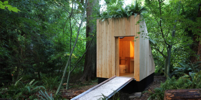 این توالت ماژولار از چند پنل چوبی ساخته شده و نمای بیرونی آن از سرو مقاوم در برابر پوسیدگی است. سقف سبز رنگ آن نیز میزبان گیاهان و حیات‌وحش محلی است. پوشش چوبی به‌صورت نیم‌سوز برای خاصیت ضدباکتریایی آماده شده و یک فن کم‌مصرف جریان هوا را به‌طور مداوم متعادل می‌کند. داخل سازه نیز محققان از نورگیر و پوشش‌های چوبی و فولاد ضدزنگ فضایی هماهنگ با جنگل اطراف استفاده کرده‌اند.